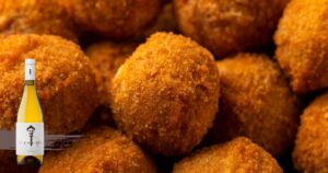 El sabor profundo de los hongos es un clásico del otoño. Estas croquetas, con un toque de trufa, son pura textura y aroma, ideales para acompañar conversaciones largas junto al calor de una copa. Un vino blanco con cuerpo y matices de barrica, como El Cuentista, resalta los tonos terrosos del boletus y aporta un punto de frescura que equilibra la untuosidad del bocado.